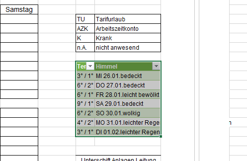 Mein Problem, ich möchte die Wetter Tabelle gern so bearbeiten das sie in meinem vorbereiteten Blatt passt.