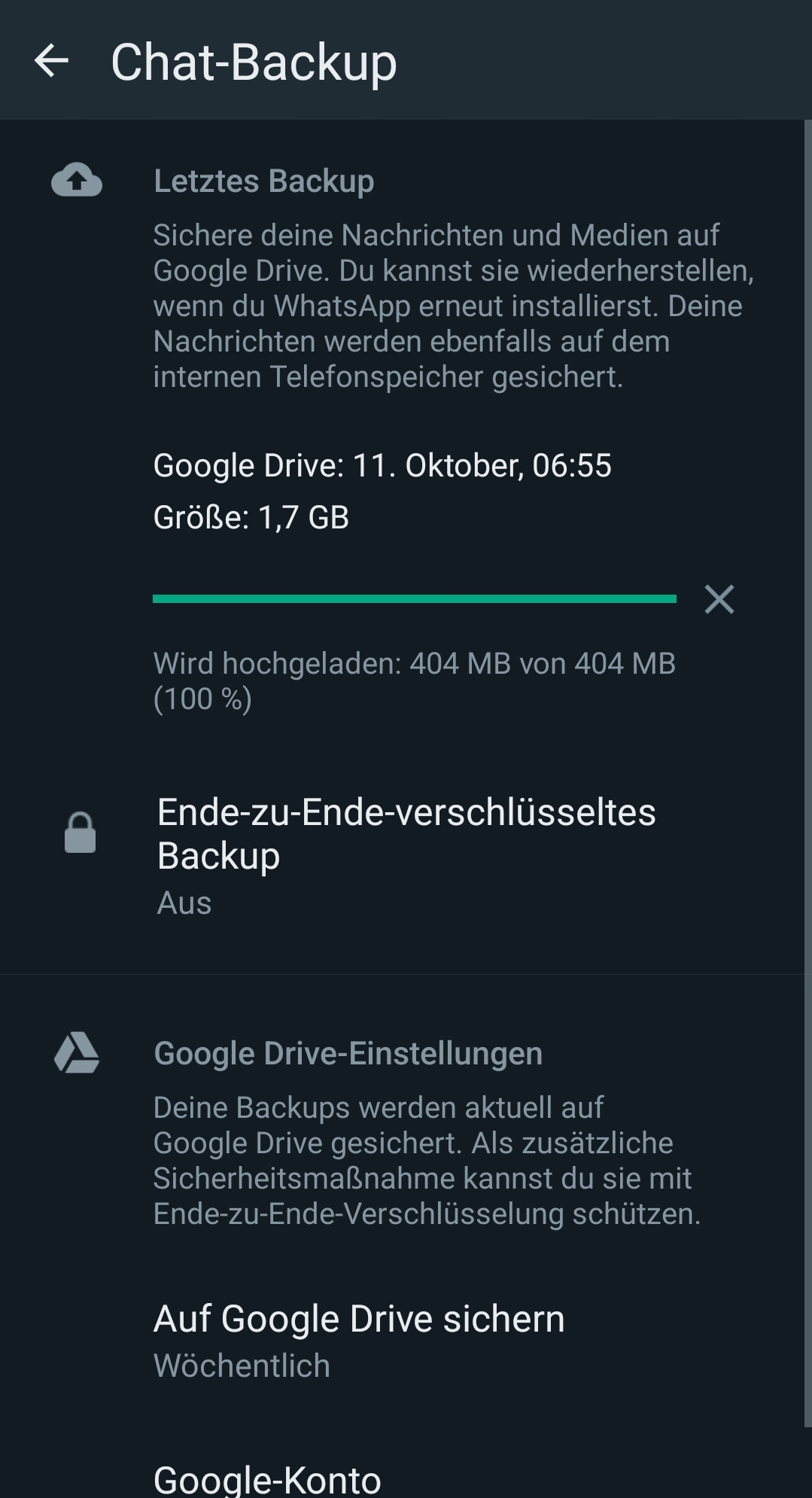 ich habe seit 10 Tagen folgendes nervige Problem beim Android Smartphone. Das Backup läuft an und erreicht dann 100%, kann jedoch nicht abgeschlossen werden.
