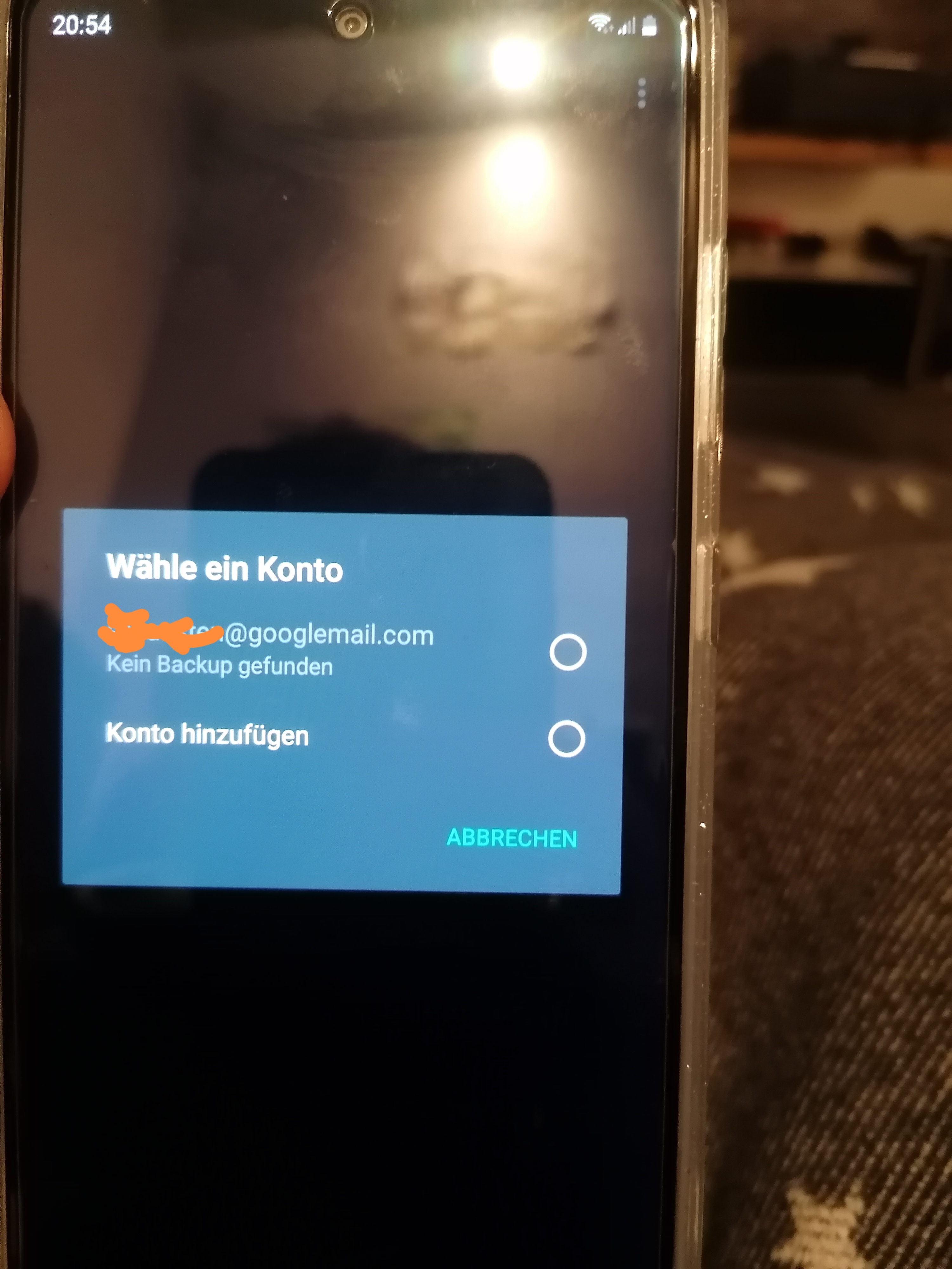 Komischerweise wird aber in einem Schritt vorher gezeigt, dass es unter der Email Adresse ein aktuelles Backup gibt.