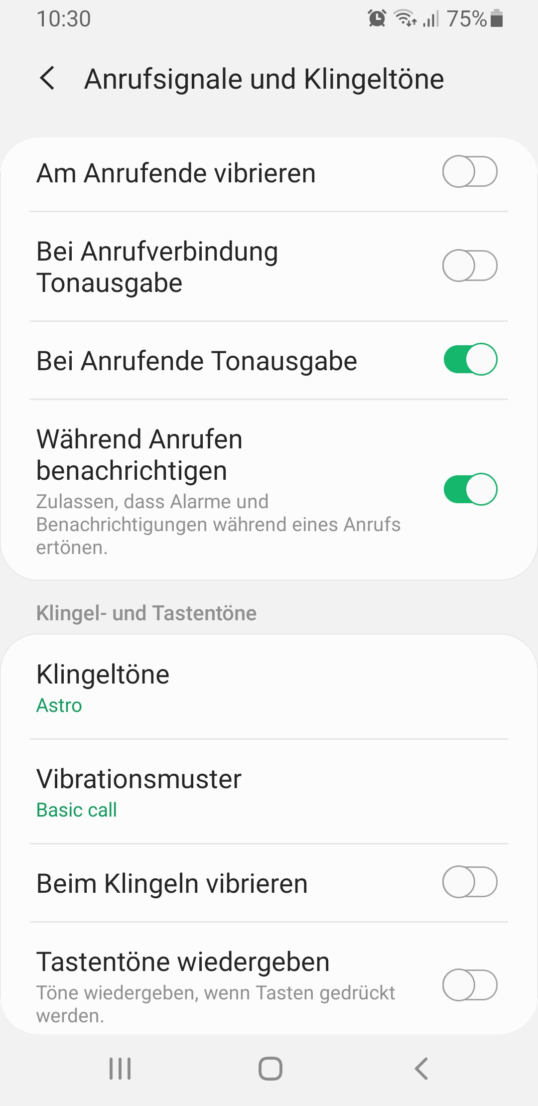 Und jetzt machst du was? Du tippst bei Anrufe auf Klingelton Standard (Astro)? Bitte ein Screenshot von dem, was dabei passiert. Da müsste sich was öffnen, was nicht in deinen Screenshots zu sehen ist.