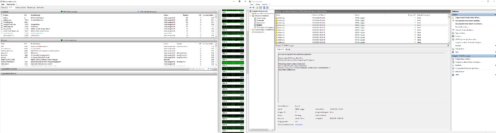 Leider fängt mein PC manchmal an zu ruckeln ohne eine Auslastung. (Keine offenen Programme o.ä.) Jedoch nicht immer. Wenn ich zum Beispiel CPU & GPU Benchmarks laufen lass, Lasten diese alle Komponenten zu 100% aus ohne Probleme und ruckeln. In der Ereignisanzeige sind whea Logger 17 Fehler abgelegt welche theoretische mit der GPU zu tun haben müssen. Die Treiber habe ich von Nvidia direkt heruntergeladen. Ebenso habe ich dass Problem dass abwechselnd 1-2 Threads am Anschlag ausgelastet sind. Diese sind nicht immer die gleichen und ich komm nicht dahinter von was dass kommen kann. Wenn das System ruckelt ist das Problem mit der Auslastung auch immer zu sehen...