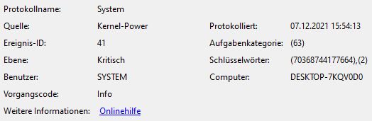 Ich kann Benchmarks und Stresstests problemlos laufen lassen, wie z.B. Furmark, Prime, Cinebench, Heaven oder Firestrike. Der Fehler tritt auf, sobald ich aber Hunt Showdown spiele. Zum Teil erhalte ich ihn im Menu oder sobald ich in eine Runde lade. Der Computer läuft sonst auch anstandslos, ich habe zur Sicherheit am Freitag den 03.12 nochmals Windows neu aufgesetzt und nur die wichtigsten Dinge installiert. Die Temperaturen sind nicht auffällig.