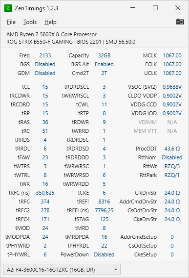 Um zu sehen ob das wirklich der Fall ist, oder was da sonst passiert.Chefkoch42 schrieb:Magst Du auch noch mal ein ZenTimings schicken ohne DOCP?