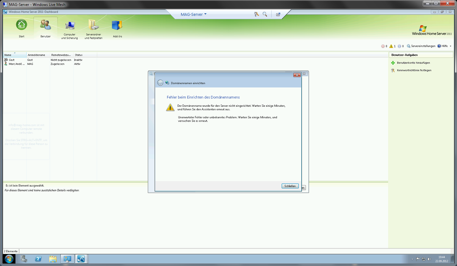 Ich habe in Problem mit mein neuen WHS 2011, Installation lief Ordnungsgemäßohne Fehler, ansich läuft der Server auch Startet aber die Client Rechneröffnen nicht die Connector Seite und der Server läst sich unterServereinstellungen unter Remotewebzugriff den Dmänennamen nicht einrichten, Loginin Windows Live geht noch Domain aussuchen auch, aber wenn er sie Einrichtensoll kommt ein unbekannter Fehler. Updates wurde alle schon installiert. Es wurden auch noch keine Rollen oder Dienste oder Co. gändert ist bis auf Treiber noch jungfreulich.