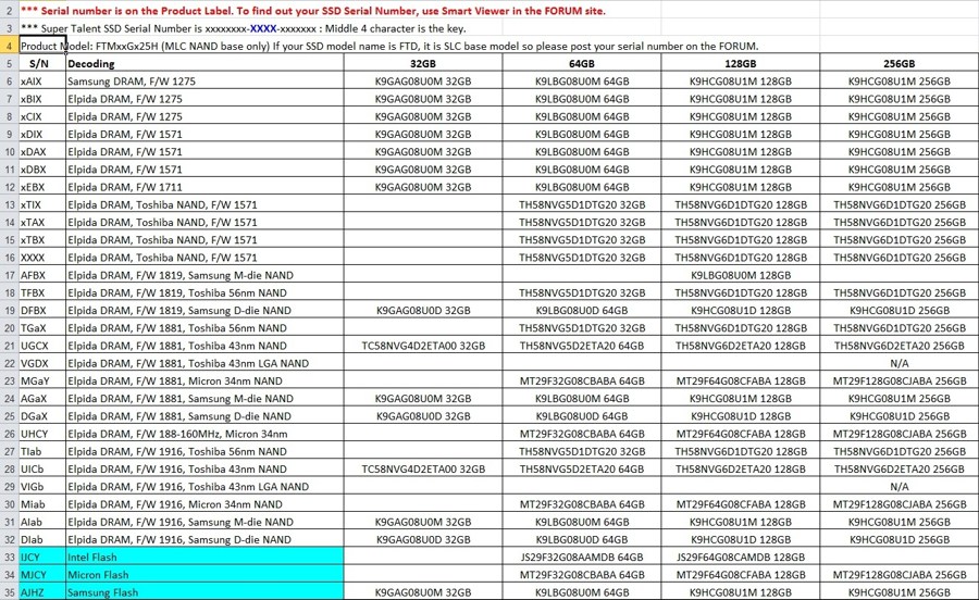 Für die welche nicht direkt diese Excel Datei öffnen können weil Sie dafür kein Prog haben hier die Liste als Bild, so seht ihr welcher NAND verbaut wurde.