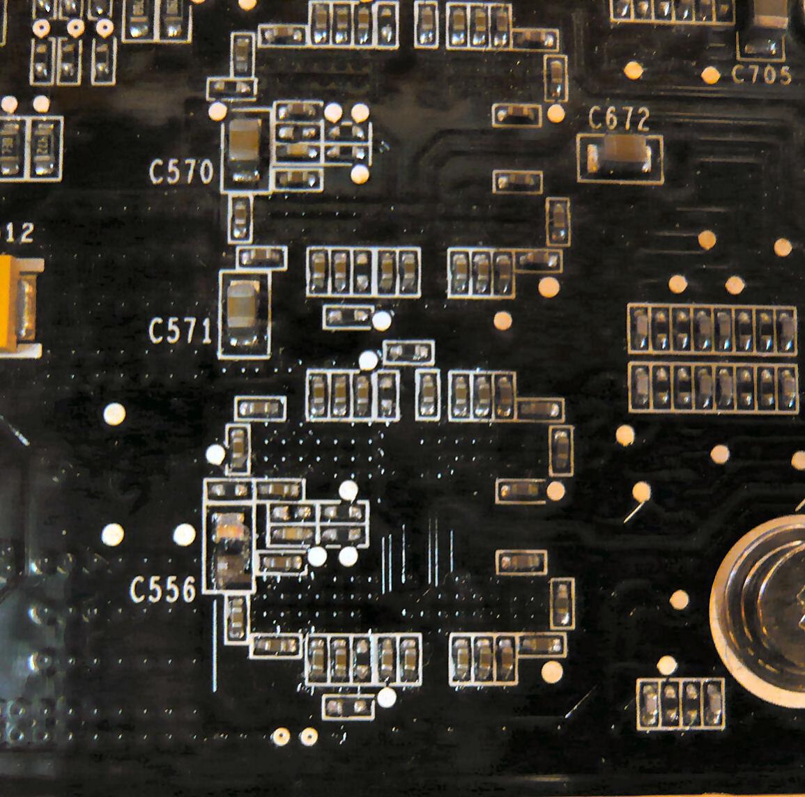 bei meiner alten Gefore 8800 GTX hat sich ein ein Widerstand gelöst und is abgebrochen.