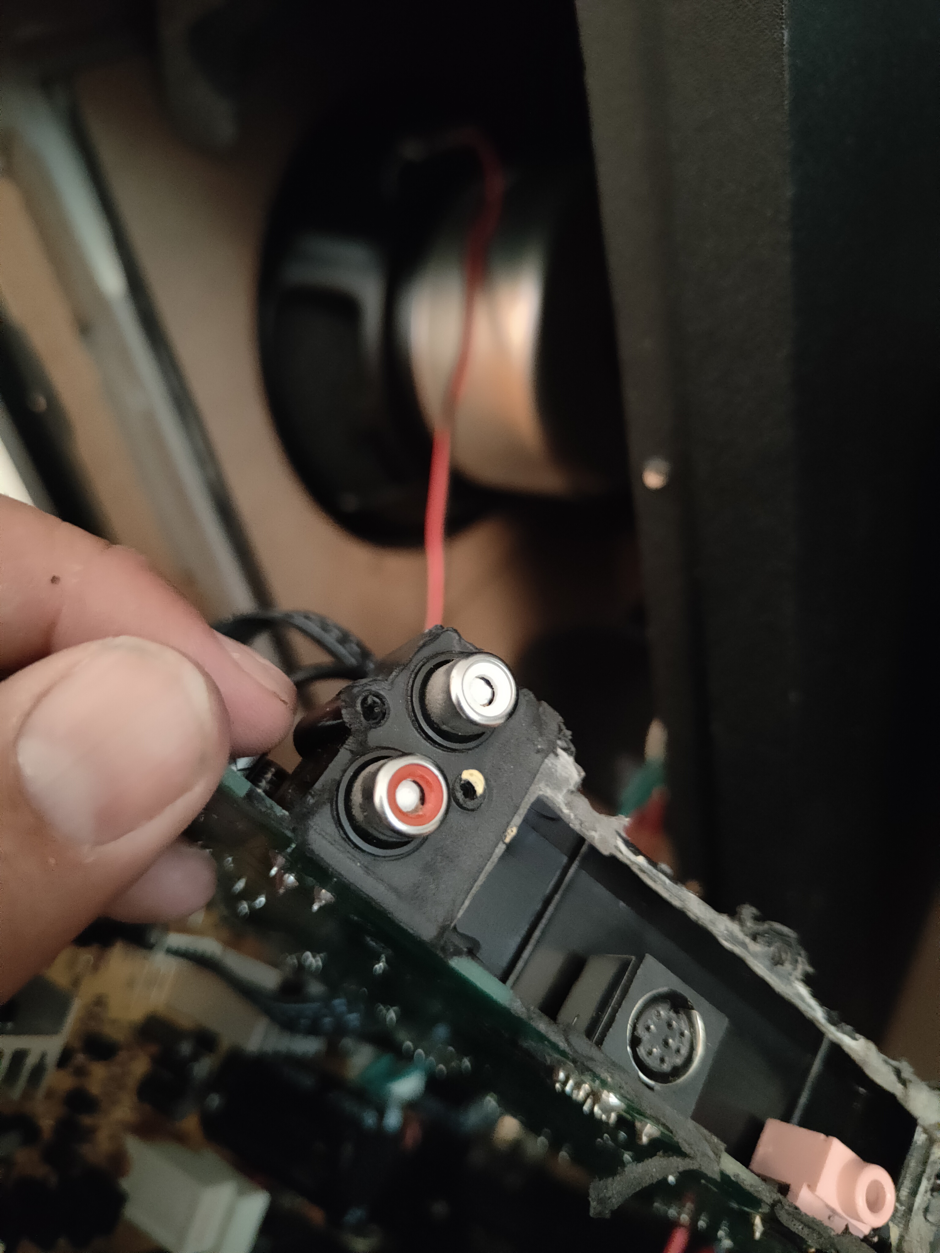 Ich bin neugierig. Wie schafft man es, bei einer Stereo-Cinch-Verbidung BEIDE Pins gleichzeitig abzubrechen? Die Cinch-Stecker haben doch Masseklammern rundherum, was ist denn mit denen passiert?!