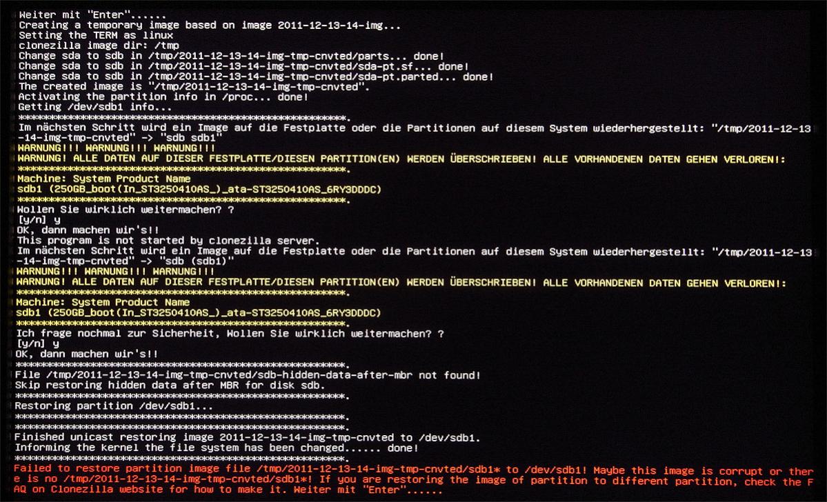 5. Sicherheitshalber alle anderen SATA Platten abklemmen ...