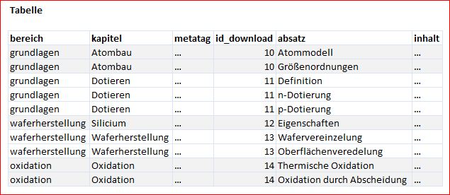 2) Nur eine Tabelle, dafür einiges doppelt (Metatags, Download-ID):