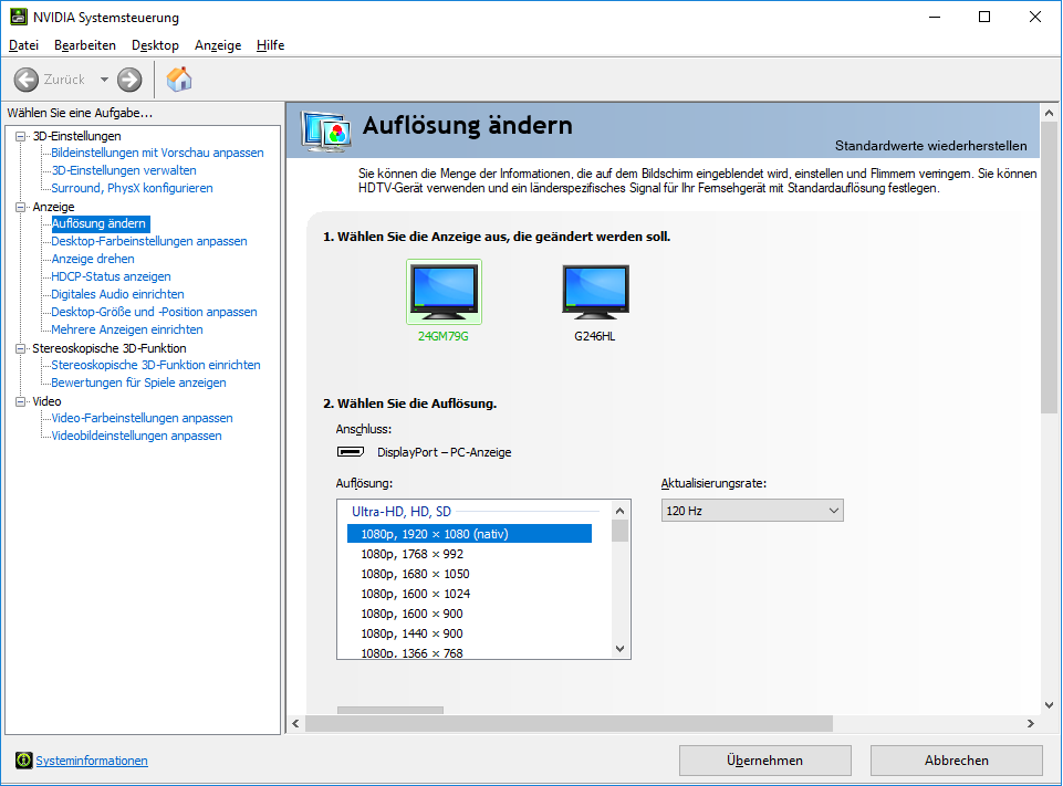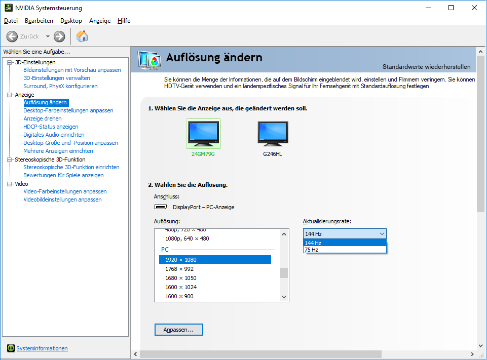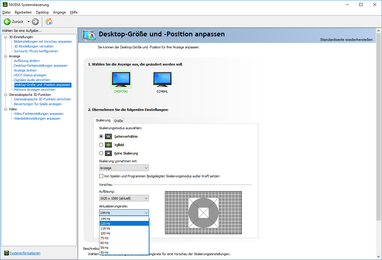 Hallo, ich will meinen Monitor von 144hz auf 120hz stellen da ich mit 144hz bei schnellen Bewegungen eine Art Gitter habe.