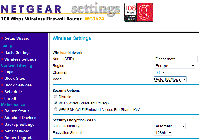 Ich habe hier einen 108 Mbit WLAN Router und eine 108 Mbit WLAN-PCI Karte in meinem PC.