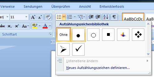 Wie bekomme ich bei meinem Lebenslauf die Kreise in mitte der zeile (word 2007)