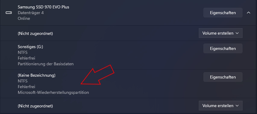 Eine SSD mag sich aber nicht komplett säubern lassen was die Partitionen angeht. Die Windows Wiederherstellungspartion