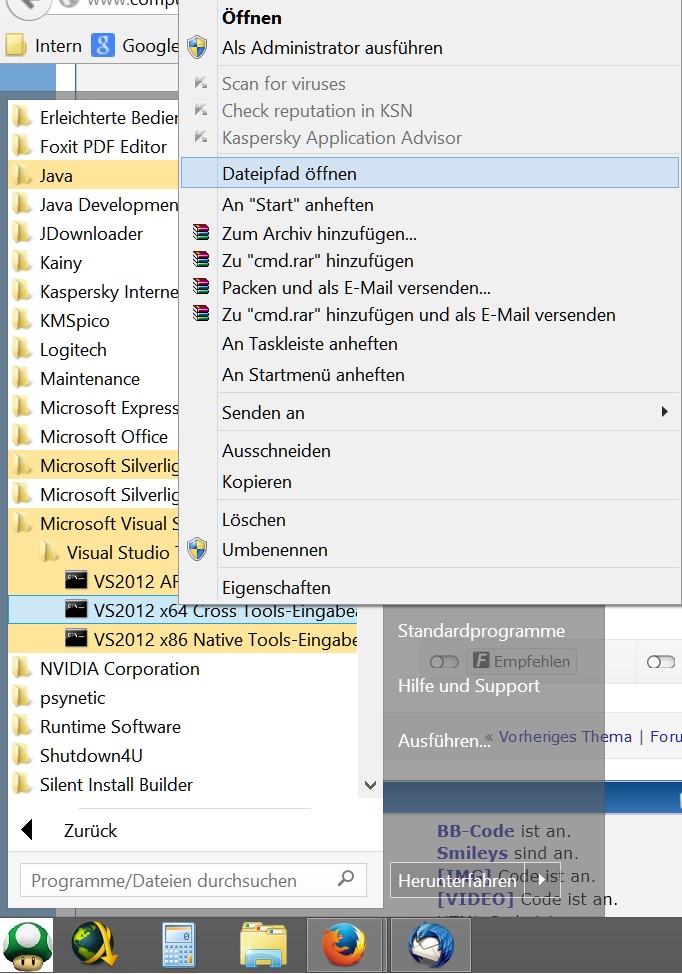 Die Frage aber ist, wie bekomme ich dort ein Verknüpfung rein, die dort noch nicht drin ist, wenn ich nicht weiß, wie ich eine solche Verknüpfung zu einer App aus dem START MENU nich zu erstellen weiss !!!