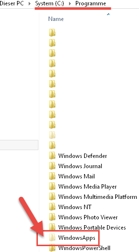 In Windows 8.1 ist der Ordner WindowsApps unter X:\ Programme zu finden.