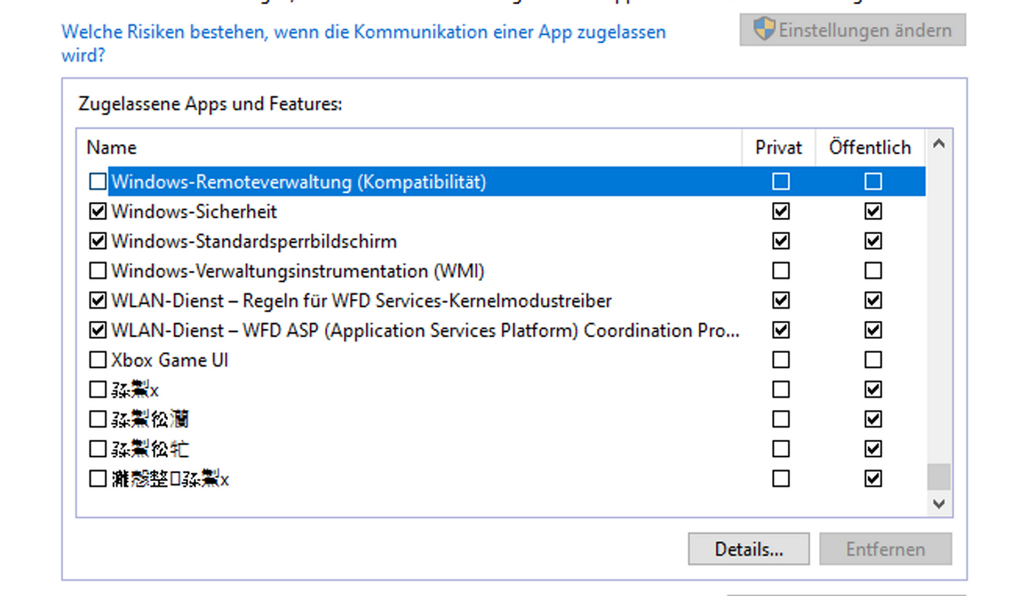 Ich wollte ein Programm von meiner Firewall erlauben lassen, TES Skyrim Special Edition, alles gut und schön, jedoch fand ich am Ende der Liste das, es sieht aus wie Asiatische Schrift und es lässt sich NICHT entfernen, ich habe alles versucht, ebenso lässt es sich auch auf dem Computer nicht lokalisieren und hat keinerlei Beschreibung! Es sind die letzten vier EINTRÄGE!