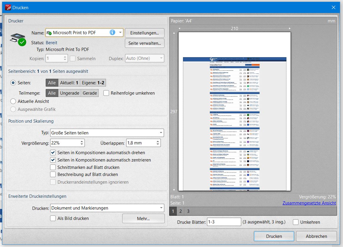 Ich verwende im allgemeinen einen Druckertreiber wie PDFcreator unter Windows 10 um Dateien und Webseiten in PDF Dateien zu drucken. Das funktioniert auch ganz gut