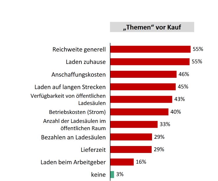 In den verschiedenen Umfragen die ich kenne werden hauptsächlich Probleme beim laden im Altag angeprangert. (und zwar bei der Frage ist ein Elektro auto im Jahr 2025 was für mich in meiner aktuellen situation ja oder nein)