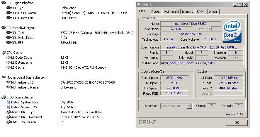 Der E6850 macht locker die 3,6Ghz aber alles was darüber ist sollten nur USER machen die erstens Ahnung davon haben und zweitens die USER die diese Leistung benötigen....