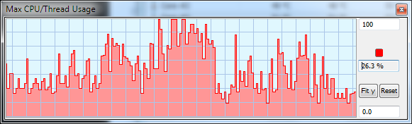 HWinfo installieren (imo das beste Programm dafür), mit Sensors only starten. Dann auf Einstellungen das Update-Intervall auf 100ms setten (das ist das geringste; übrigens beliebig nah bei 0 würde ohnehin keinen Sinn machen, weil entweder hätte man dann 0% oder 100% Auslastung, dann wäre nur interessant wie anteilig in der Zeit vorkommt -> genau das hat man letztlich schon wenn man das mit 100ms macht). Und dopplet auf Max CPU/Thread Usage klicken für den Graph (siehe Bild). Nun die Anwendung starten, dessen Limitierung geprüft wird und schauen, ob die Last über ~80 % geht (da auch hier nicht jederzeit geprüft wird, und diese Art der Prüfung nicht alle Paramter berücksichtigen kann [siehe Antworten oben], hat man mit 80% eine gute Daumenregel; bei Hyperthreading ggf. einzelne Kerne prüfen, da so sonst ggf. 40% schon Limitierung bedeuten könnte). Falls ja, limitiert die CPU samt RAM vermutlich. Diese Methode ist, wie oben bemerkt äußerst kritisch zu sehen (wenn man es aber unbedingt so einfach direkt machen möchte, ist hwinfo aber wohl vermutlich das beste Programm und besser als der TaskManager sowieso).