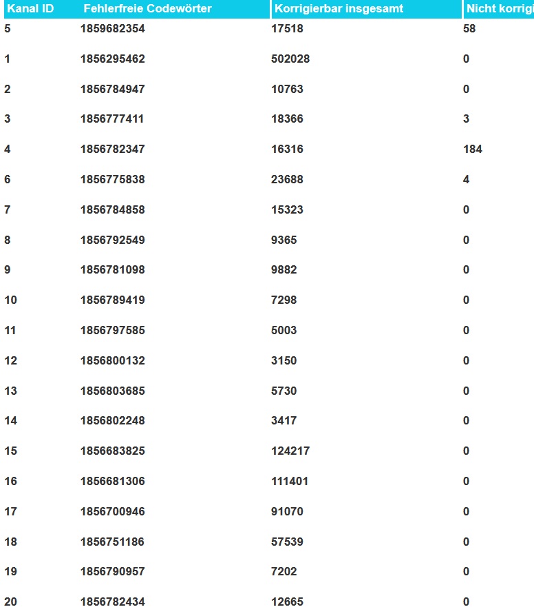 Die DS-Kanäle sehen relativ normal aus, was man von den US-Kanälen nicht sagen kann. Der SNR liegt bei 50+/- und die Modulation wechselt immer wieder zwischen 64qam, 32, 16 und QPSK hin und her