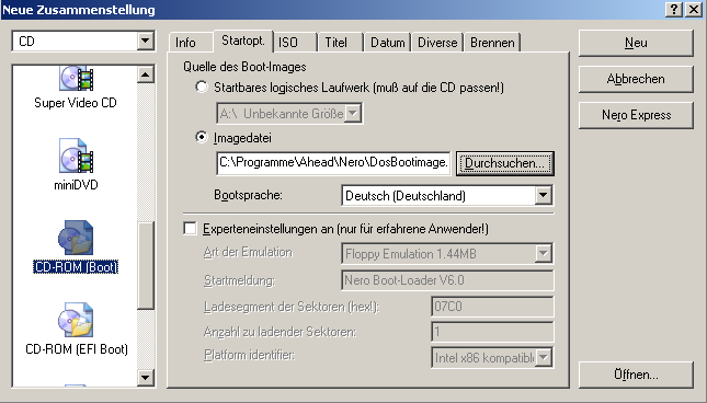 finde dort auch die Option startbare Disc erstellen, doch wenn ich die CD-R dann teste klappt es mit dem Lesen der CD nicht.
