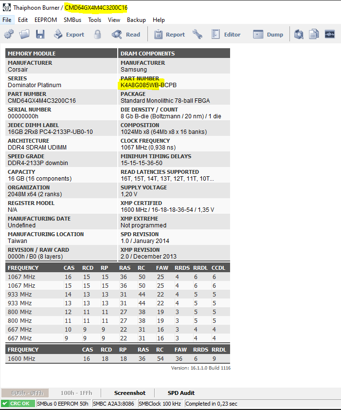 Ich habe dieses Kit: CMD64GX4M4C3200C16