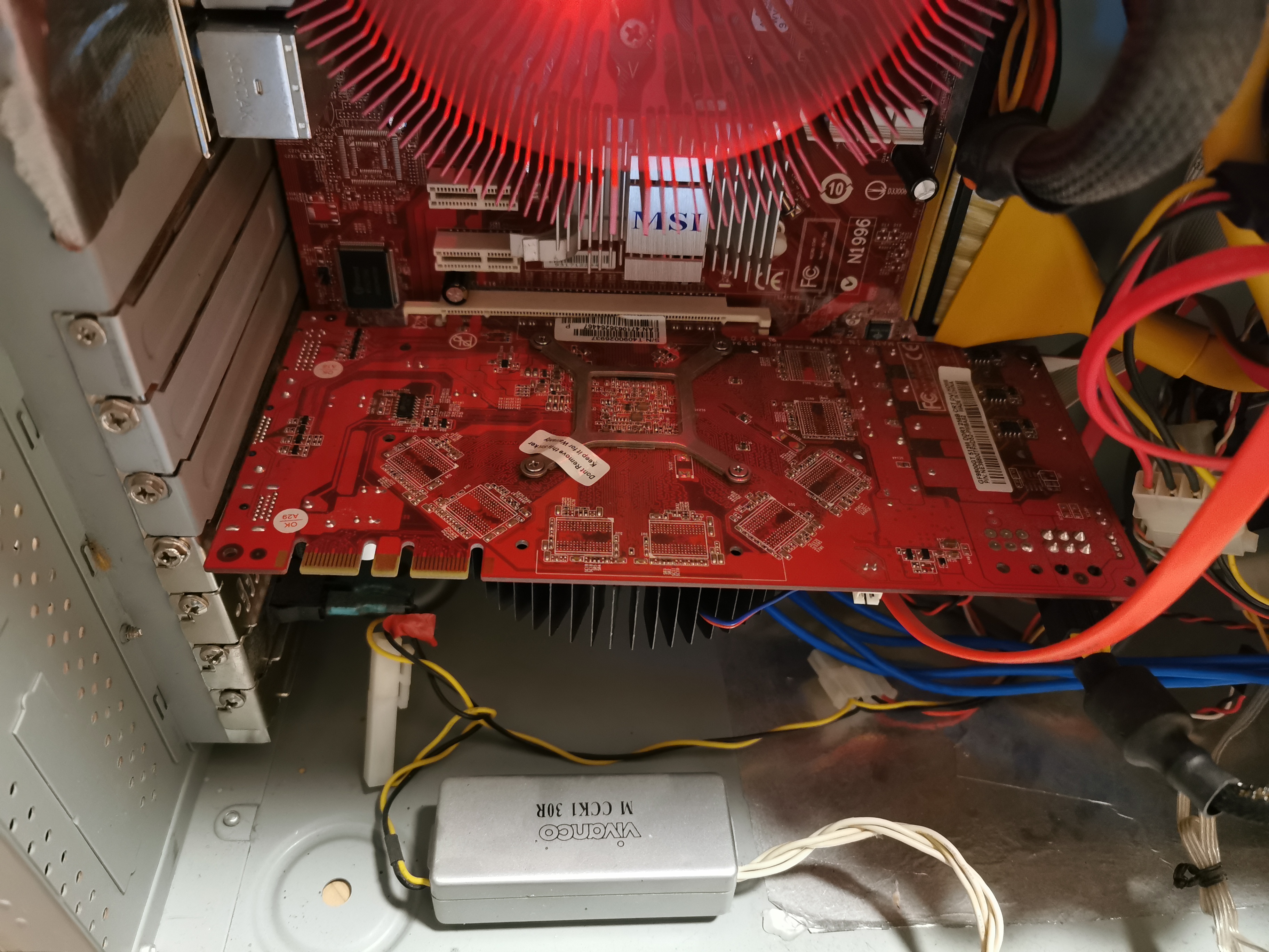 Also das Motherboard ist von MSI und ich gehe davon aus dass die Grafikkarte eine GeForce ist. Einmal die Fotos von der Hardware