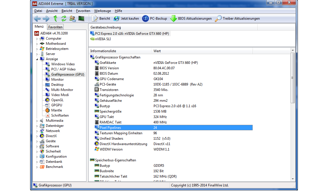 Und zwar habe ich heute meinen neuen PC bekommen,mit einer Nvidia Geforce GTX 660,und da ich gerade keinen Schraubenzieher zum Öffnen des Gehäuses zur Hand habe,wollte ich fragen,wie ich z.B. softwaremäßig herausfinden kann,von welcher Marke (also z.B. Asus oder Zotac oder MSI) meine GTX 660 ist.