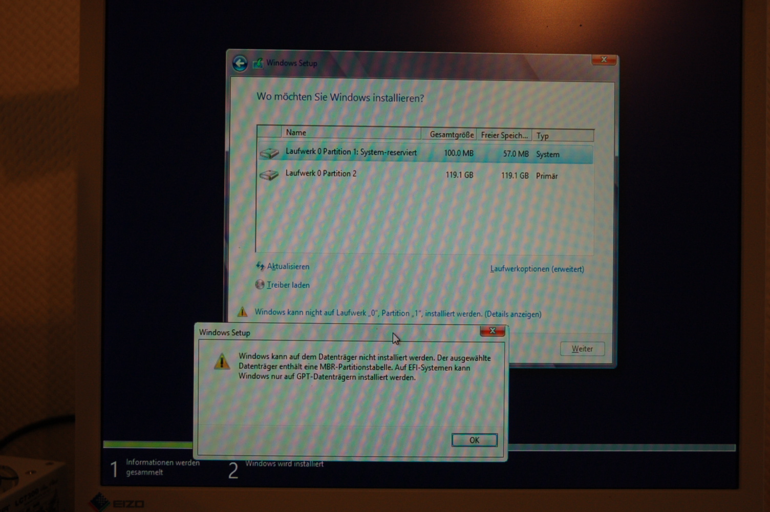 wollte jetzt an meinen Gigabyte GA-H77M-D3H W8 in UEFI installieren via USB-Stick aber es geht leider nicht weiter.