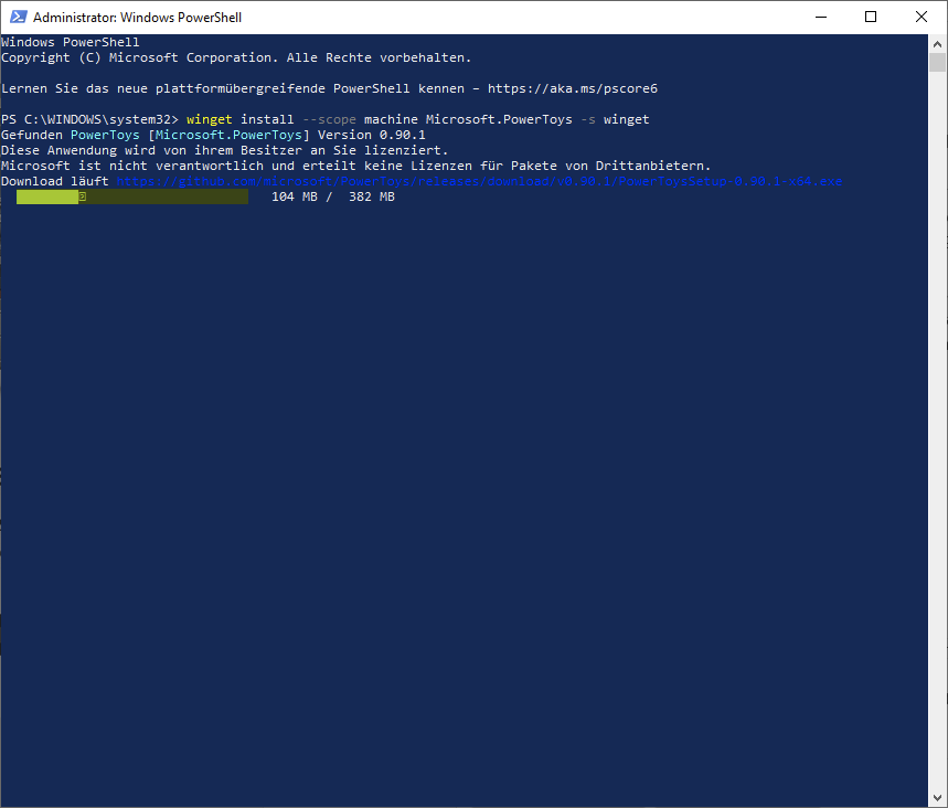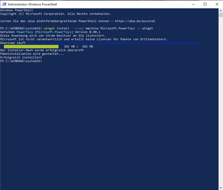 winget install --scope machine Microsoft.PowerToys -s winget eingeben und Enter drücken