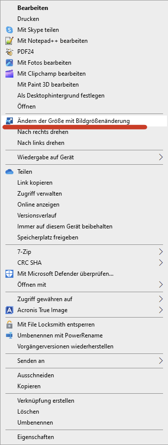 Nochmal vielen Dank für die aufgezeigten Möglichkeiten,. Das soll jeweils nur für ein Einzelfofoto gelten. Mit Irfan View, FaststoneImageviewer, Paint und andere kenne ich nicht, oder nicht damit gearbeitet. Zwar mal mit Pait laboriert, aber dann Foto total zerstört. Meinte das, wo an auf Bild mit rechter Maustaste klickt, man wählt Resize aus und dann im aufgehenden Menue wird dann die Größe gewählt. Sowas meinte ich. Trau mich noch nihct die Links auszuprobieren.