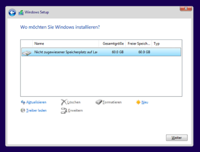 Intuitiv hätte ich noch die anderen beiden Partitionen gelöscht, hatte aber Angst damit was zu schrotten..