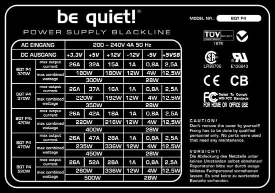 In meinem PC habe ich aktuell fünf Festplatten drin, drei optische Laufwerke, ein Floppy, 1,5GB RAM, einen A64 3200+, eine 6600GT PCI-E, noch zwei andere Steckkarten (IDE-Adapter, Sound) und zwei zusätzliche 80er Gehäuselüfter. Gepowert wird das Ganze von einem BeQuiet! P4 370Watt (siehe Anhang). So, über kurz oder lang werde ich da wohl noch eine weitere Platte einbauen wollen, wobei wir dann schon bei sechs Platten sind - später dann irgendwann vielleicht noch eine. Spart euch bitte Fragen der Art warum, wieso, weshalb, ok?