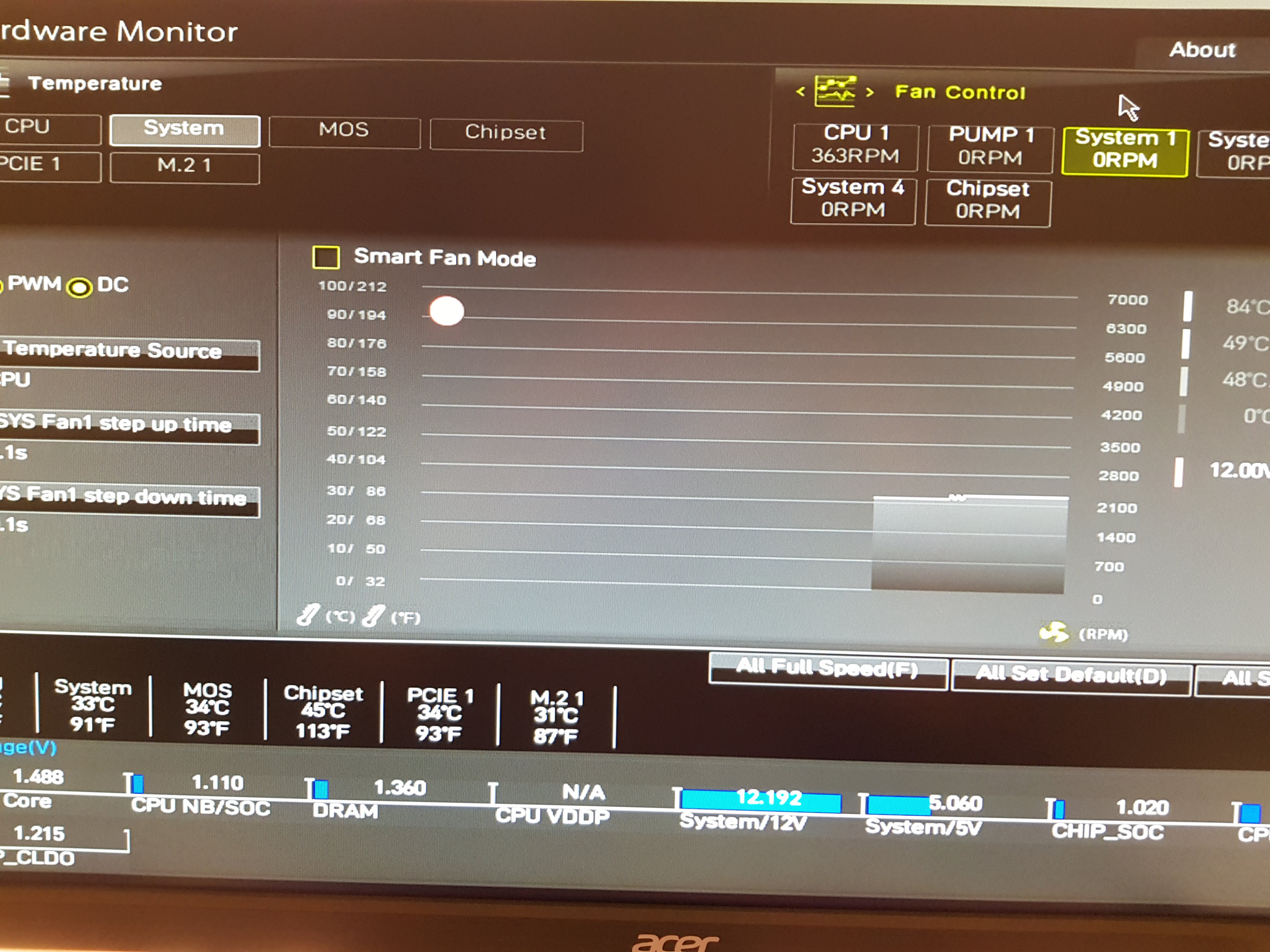 Die 3 Gehäuselüfter stecken an einem "Nexus+ 2 Fan Hub" per 3-Pin Anschluss. Diese laufen im DC Mode. Wenn ich auf PWM stelle, gehen die Lüfter aus. Er zeigt mir auch keine Umdrehungsgeschwindigkeiten an (Roter Pfeil auf dem Bild).