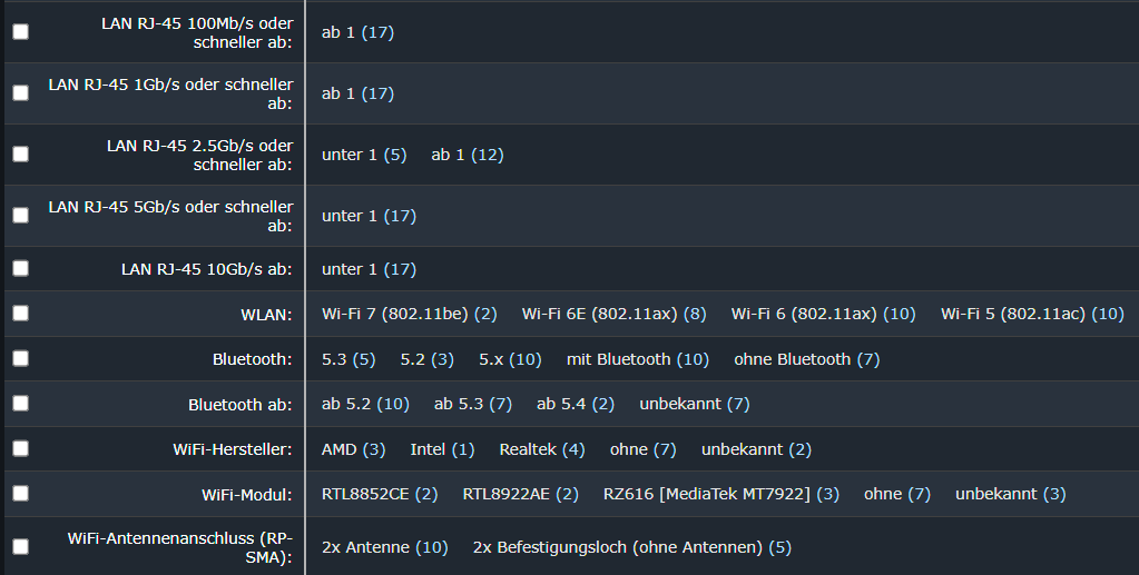Auf Geizhals z.B. wird mir nur der Hersteller des W-LAN-Moduls angezeigt (siehe Screenshot).