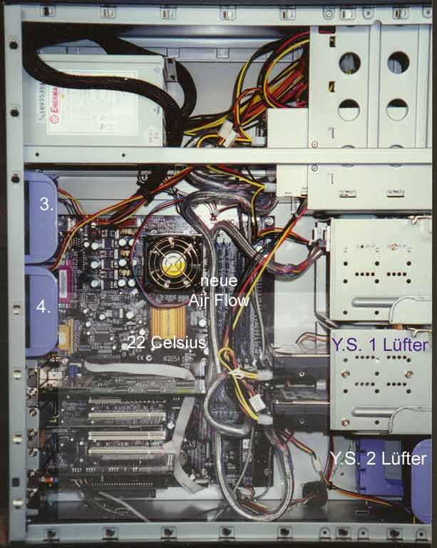 CS601 insgesamt 4 YS-Tech Lüfter: Front 2 mal Luft ansaugen