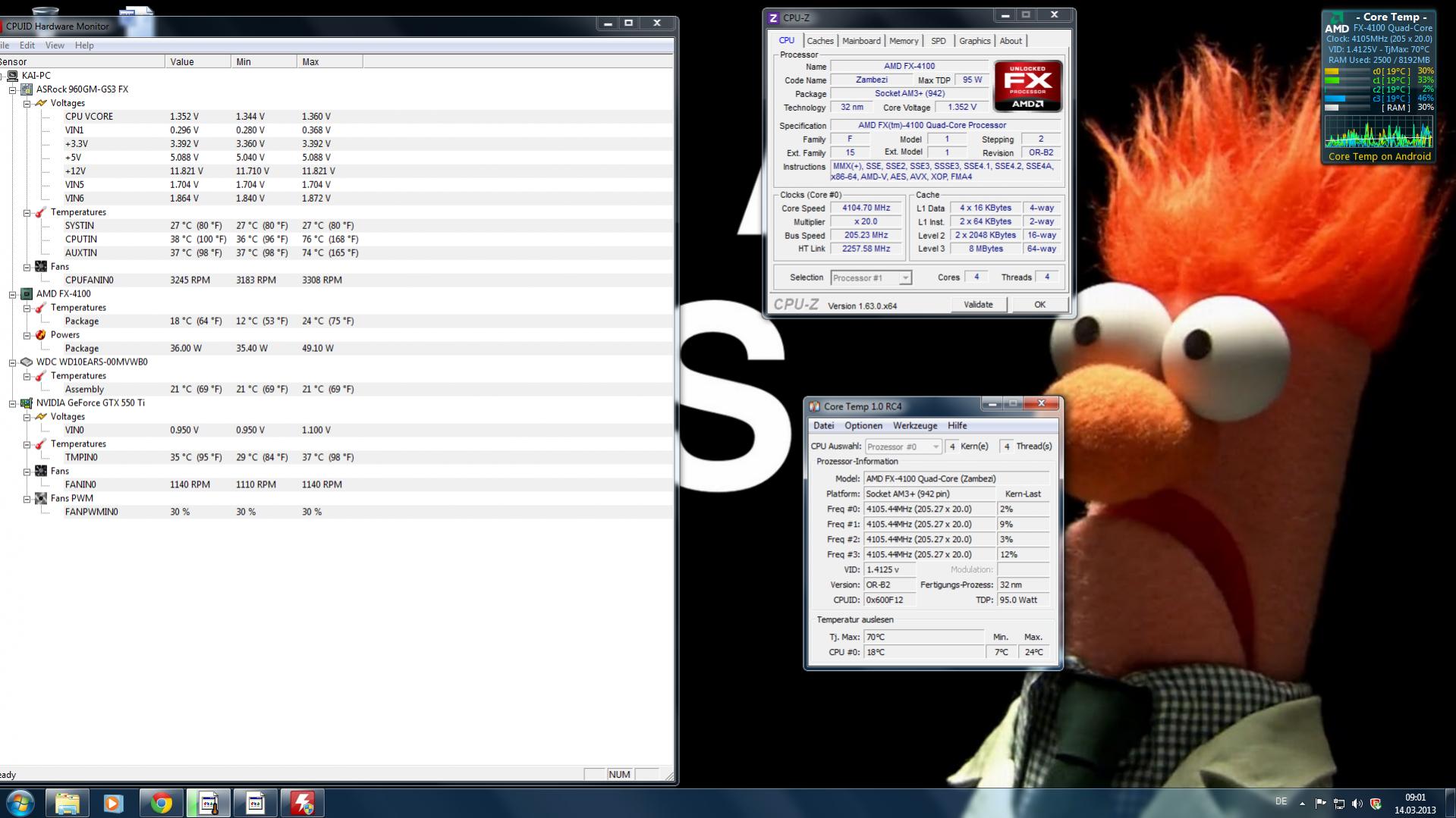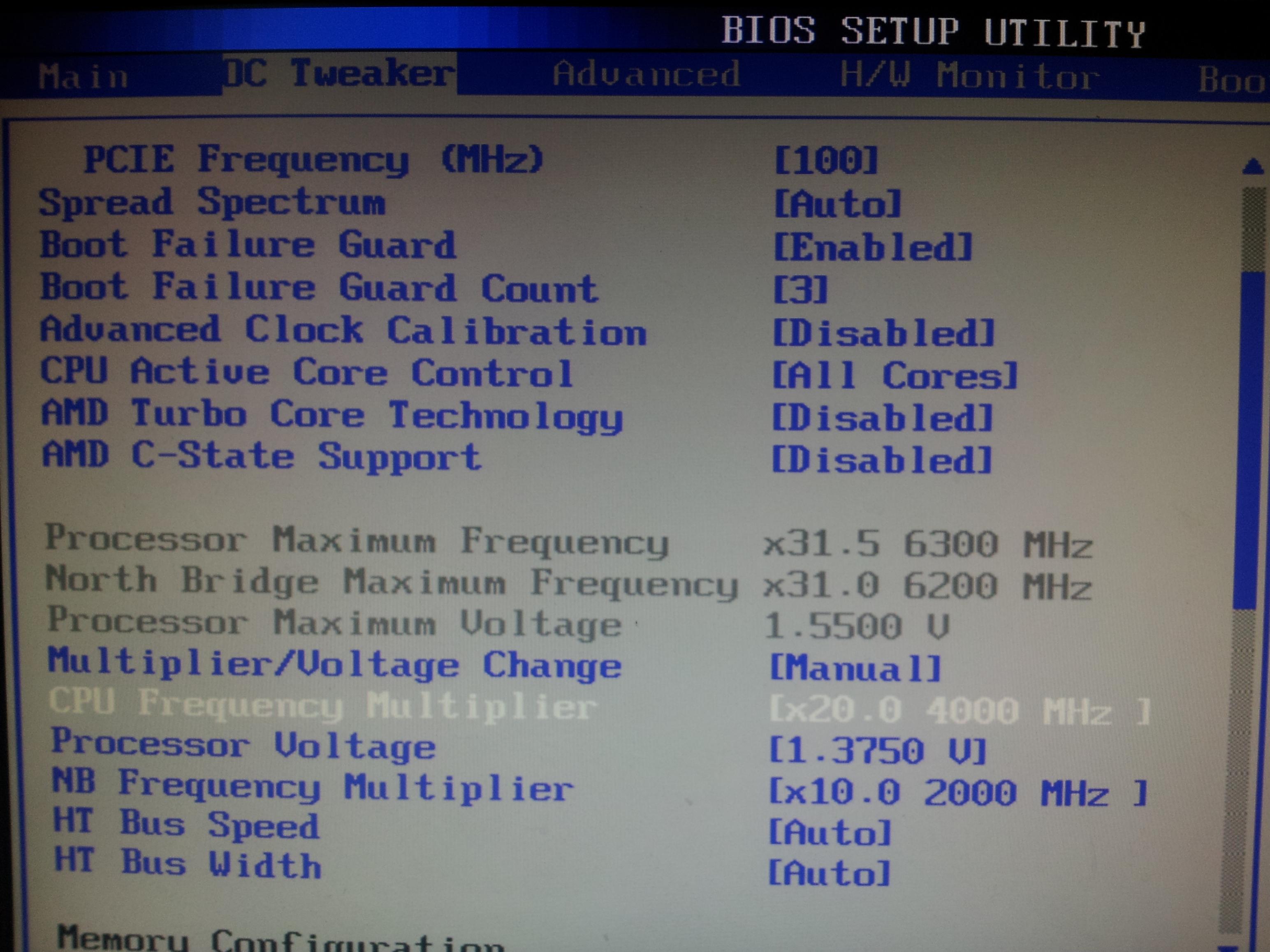 Der "CPU Turbo-Modus" ist ausgeschaltet. Und APM /HPC (denke ich mal das, das die Stromsparfunktion vom Bios ist) weiß ich momentan nicht ob sie aktiviert/deaktiviert ist. Und 1,287 V klingt mir ein bisschen wenig da ja der Standarttakt von einem FX-4100 bei 1,375 V liegt?
