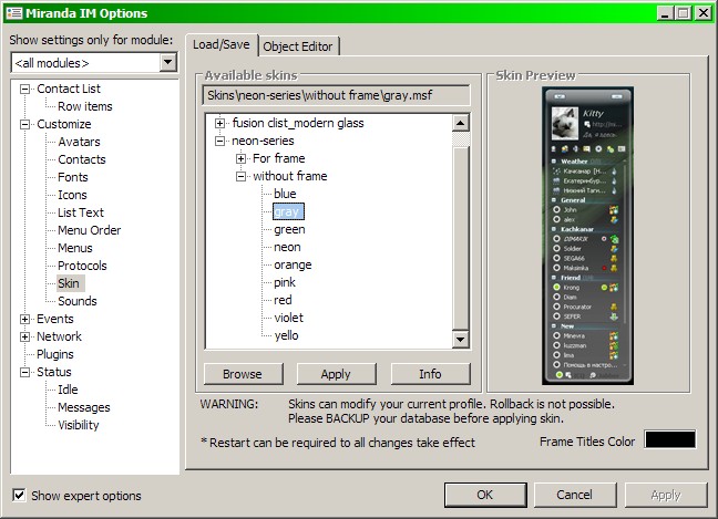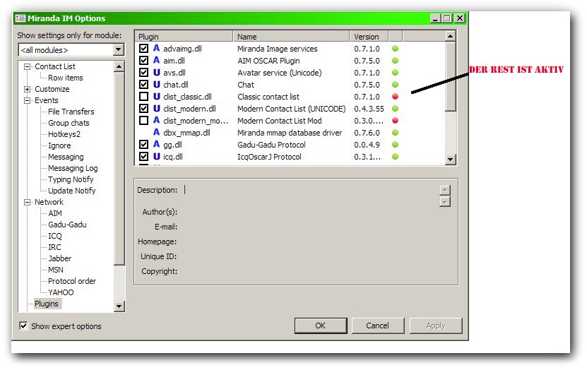 als kleinen Tipp würde ich dir raten mal Miranda Fusion runterzuladen, das ist sozusagen ein vorkonfiguriertes Miranda, dass dann optisch den eigenen Bedürfnissen anzupassen sollte leichter und schneller gehen, außerdem bringt das schon einen haufen an Plug-ins mit sich, die man ja je nach belieben de- bzw. aktivieren kann.