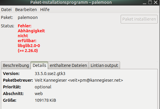 Wie ist diese zu verstehen? Ist die Library auf meinem System zu alt oder zu neu? Ist noch die ...lib V2.0-0 installiert, und ich benötige eine neuer als 2.26.0? - Oder ist es umgekehrt, und die DEB-Installationsdatei benötigt die alte Version 2.0-0, und kann mit der V2.26.0 nichts anfangen?