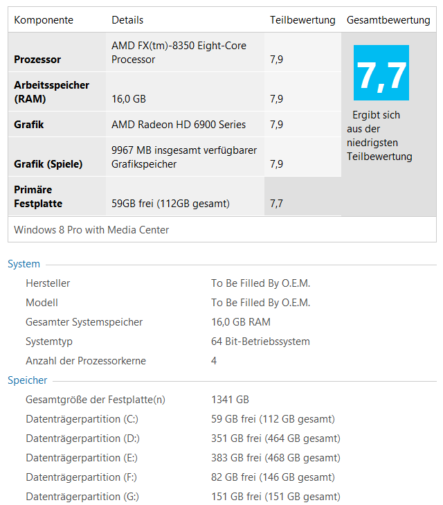Wobei unerklärlich ist, wie Windows 8 für eine HD Radeon der 5900 Series = 8.5 Punkte vergeben kann ?! Ist die Karte übertaktet ?Helli85 schrieb:muss auch mal wieder aufrüster der is nun schon in die jahre gekommen^^