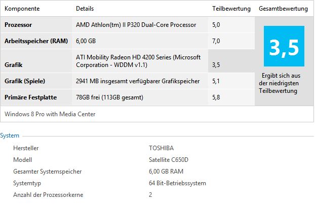 Vorher war es die HDD, die die Norm senkte, aber das mit ner SSD immer 8,1 kommt ist schon seltsam.