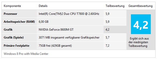Was mich erstaunt, da ja bei Windows 8 der leistungsindex bis 9.9 geht, das eigentlich noch viel Luft nach oben ist, über 9 hat doch eigentlich keiner irgendwas. Anstatt den Li laufend anzupassen hat mans wohl diesmal umgedreht gemacht.