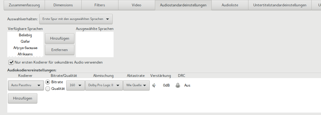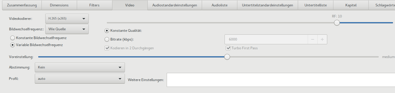 Damit das Testen der Transcodierung nicht so lange dauert, kann man vielleicht einen 10min-Teil vom Quellvideo benutzen.