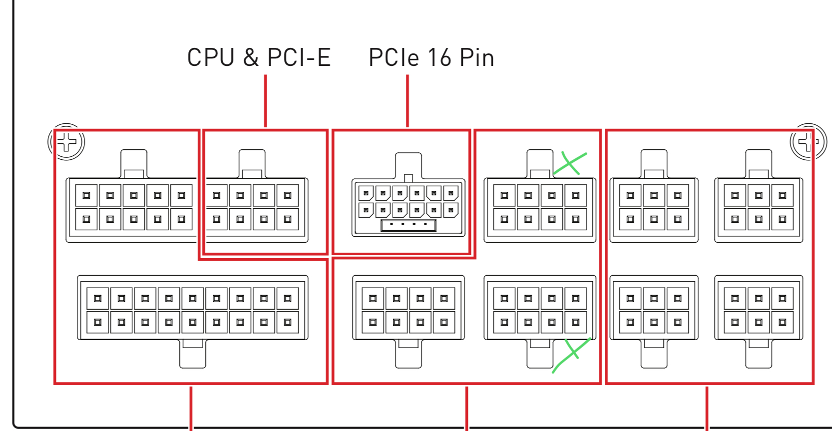 nach bedarf 1-2 der PCIe anschluesse am Netzteil.