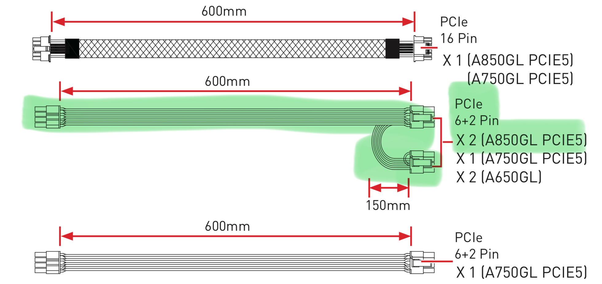 Ich habe die 3 PCI stecker ( Siehe bild )
