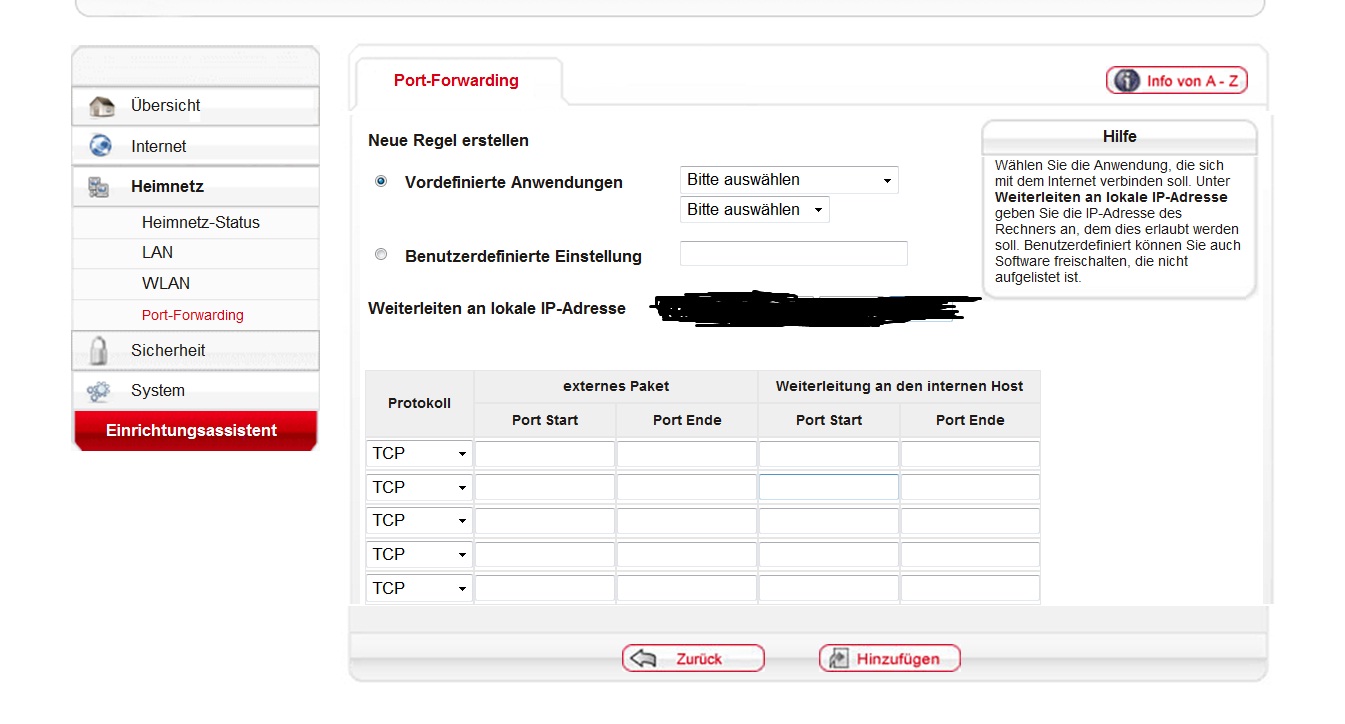 Ich weiß auch nicht ob ich die Ports umleiten, weiterleiten oder offenen soll.