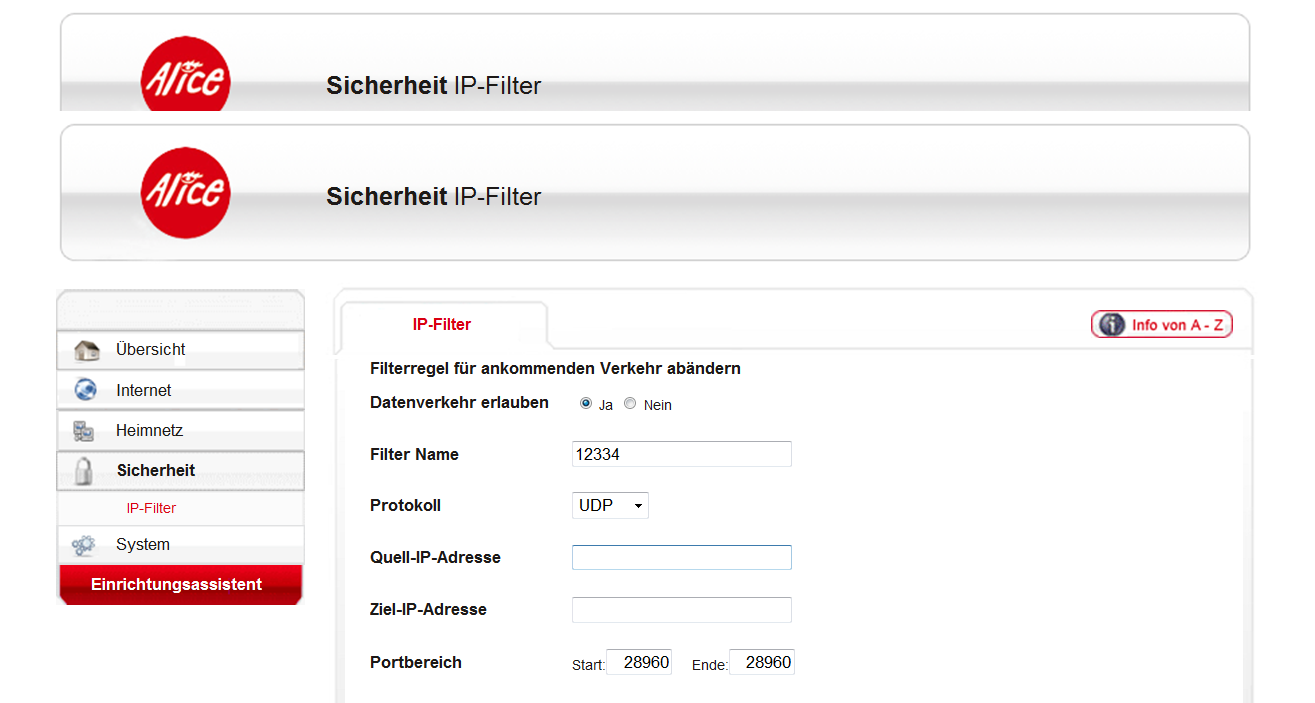 hm ich hab mal das versucht weil es immer noch nicht geklappt hat egal ob ich es bei ALice eingebe oder beid er Firewall