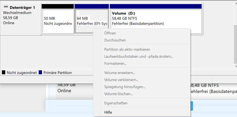 Da kann man eigtl. nichts falsch machen mit diskpart,