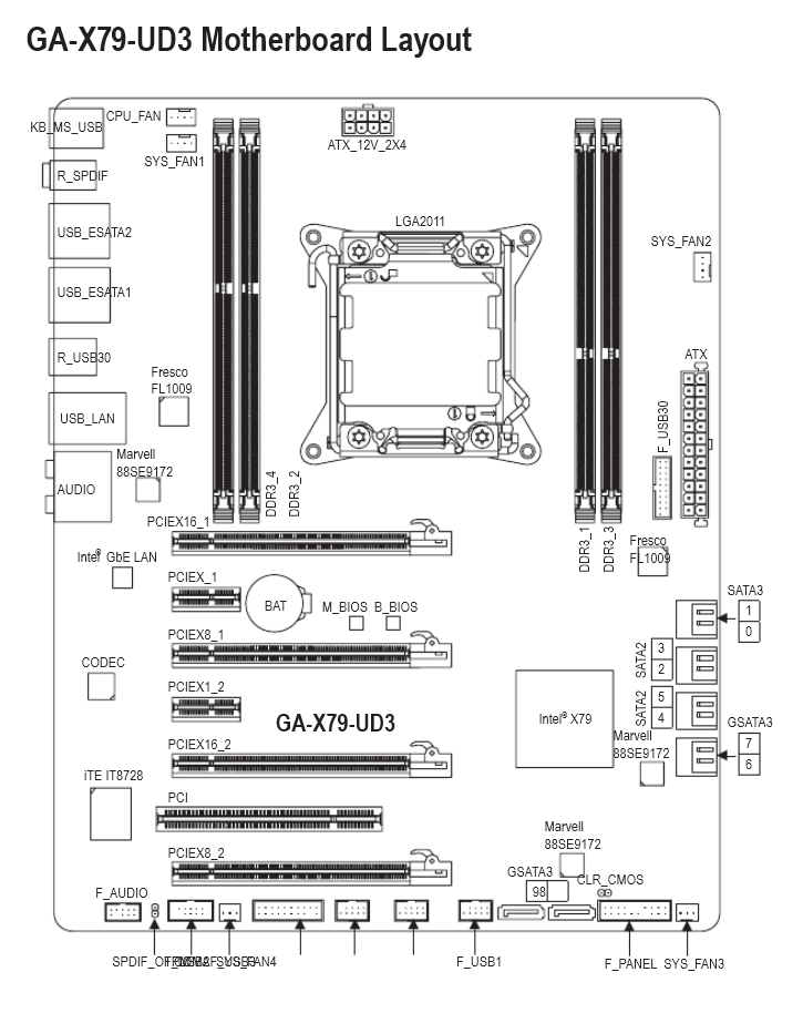 Auf dem Belegungsplan des Mainbords sind unten rechts die SATA Ports zu sehen.